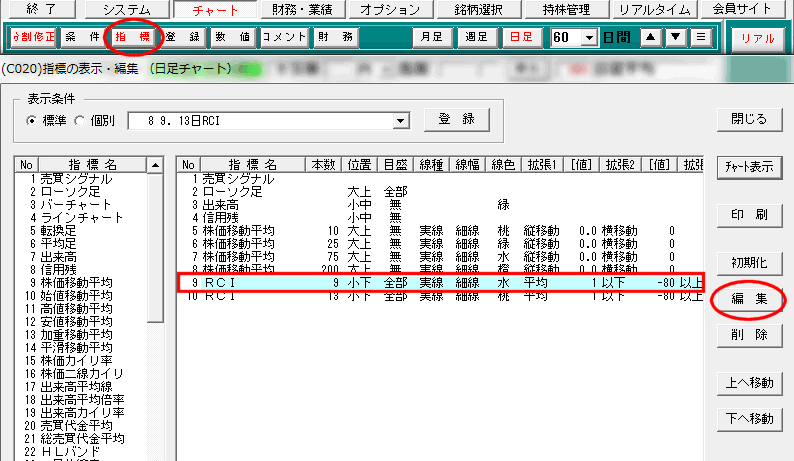「9.RCI 9日」を選択し、右側の【編集】をクリックします。