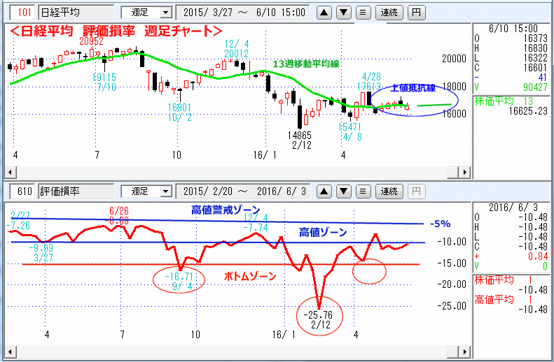 <日経平均 評価損率 週足チャート>