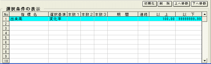 お世話になっております。お試し中です。 銘柄選択で、「出来高前日比の2倍以上」という条件を設定したいのですが、どのようにすればよいでしょうか。 移動平均線に対して何倍以上という設定はできそうですが。 よろしくお願いいたします。