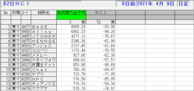 業績面ではこれから決算発表が始まり、絞り込むにはある程度の決算数字が欲しいタイミング。テクニカル面では、相場上昇が1年も続きオシレーター系テクニカルの多くが過熱圏に張り付いた状態で、タイミングをつかみにくいのが現状です。
